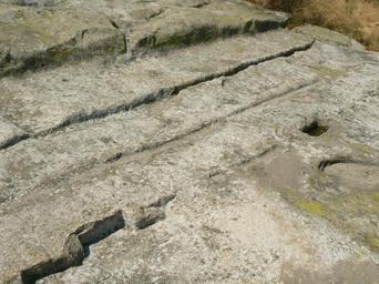 | Keywords: Belintash-stonecuts-2.JPG Успо едните п о ези на итуалната площадка на платото на Белинташ Родопите Бълга ия The parallel stone-cuts on the ritual platform on the plateau of Belintash Rhodope mountain Bulgaria Own 2007-08-11 Vassia Atanassova - Spiritia Public domain content created by the uploader Belintash |