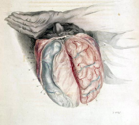 | Keywords: Bell brain cut.jpg Charles Bell 1774-1842 The Anatomy of the Brain Explained in a Series of Engravings London T N Longman and O Rees etc 1802 Historical Medical Books at the Claude Moore Health Sciences Library University of Virginia 2008-01 McLeod Reproduction of a painting that is in the public domain because of its age PD-Art Historic anatomical plates and drawings Anatomical plates and drawings of the human brain Human brain superior view Anatomy of the human head Dura mater The anatomy of the brain by Charles Bell |