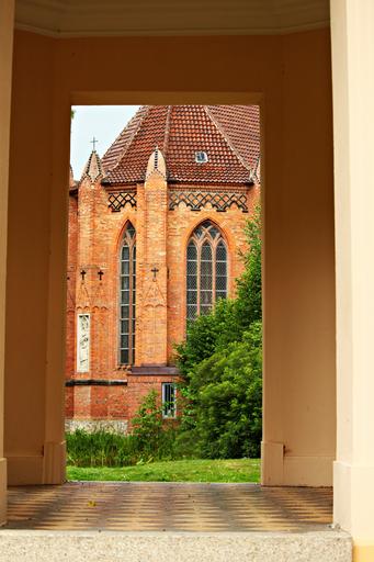 Keywords: bell tower building tower brick teepavillion door goal steeple old building ludwigslust-parchim castle park
