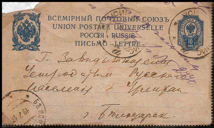 Keywords: Belotsarsk postcard.jpg <gallery> </gallery> ru Почтовая ка точка отп авленная из инусинска в Белоца ск в 1917 году Personal collection Processed by A Sdobnikov 1917 PD-old Postmarks of Russia Postal cards of Russia Postmarks uncategorised by city |