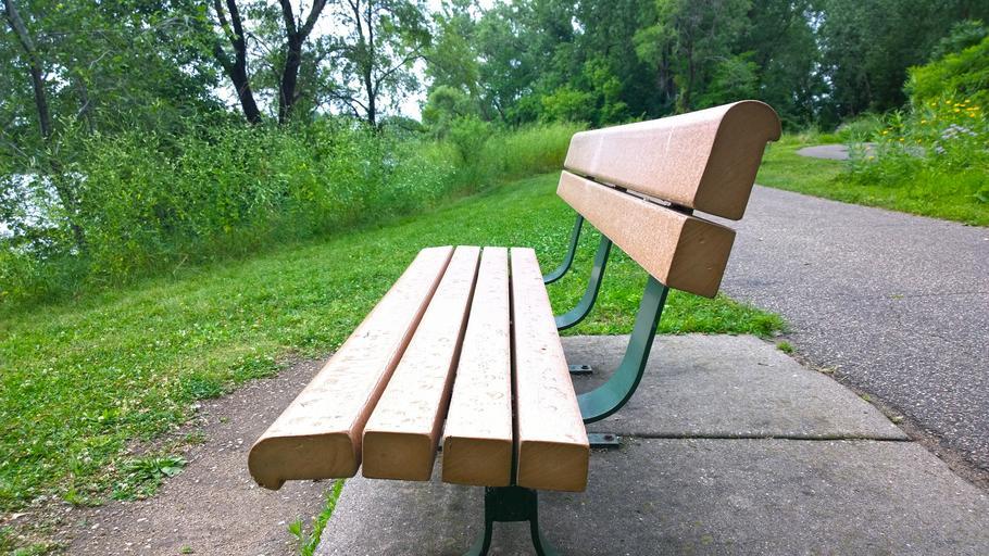 Keywords: bench park grass tree outdoor peaceful