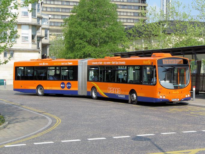 | Keywords: Bendy bus at the university of bath arp.jpg en First Somerset and Avon bus 10180 reg WX55 HWF a 2005 Volvo B7LA articulated bus with Wrightbus Eclipse Fusion bodywork pictured at the University of Bath England Painted in a special livery and marketed as The Bright Orange it takes students between the University Bath Spa University and the city of Bath The buildings of the main University site at Claverton Down are in the background own 2008-05 Adrian Pingstone Arpingstone Buses in Bath University of Bath First Somerset and Avon 10180 Public transport buses in the United Kingdom Wrightbus Eclipse Fusion on Volvo B7LA buses in the United Kingdom 55 registered buses in the United Kingdom Buses in the United Kingdom photographed in May 2008 Buses with route branding in the United Kingdom Blue and orange vehicles |