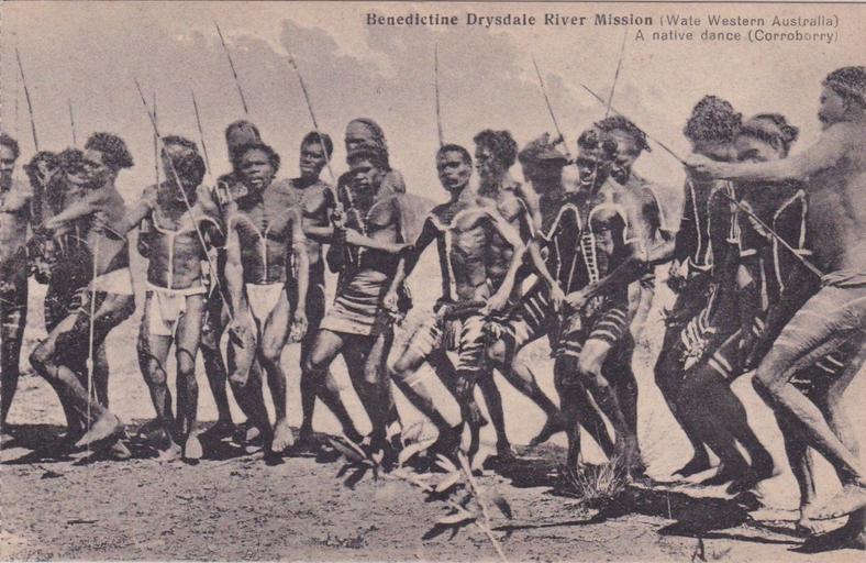 | Keywords: western australia westernaustralia aborigine native indigenous drysdale river mission drysdalerivermission benedictine vintage corroboree outdoor A corroboree is an event where Australian Aborigines interact with the Dreamtime through dance, music and costume. "Their bodies painted in different ways, and they wore various adornments, which were not used every day." The word corroboree was coined by the European settlers of Australia in imitation of an east coast local Aboriginal Australian word caribberie. (wikipedia) A corroboree is an event where Australian Aborigines interact with the Dreamtime through dance, music and costume. "Their bodies painted in different ways, and they wore various adornments, which were not used every day." The word corroboree was coined by the European settlers of Australia in imitation of an east coast local Aboriginal Australian word caribberie. (wikipedia) |