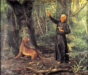 Keywords: Benedito Calixto - Evangelho nas Selvas, 1893 (ost, 58,5 x 70 cm - Padre Anchieta).jpg Artwork Creator Benedito Calixto Evangelho nas Selvas Gospel in the Jungle 1893 Oil on canvas cm 58 5 70 Institution Pinacoteca do Estado de São Paulo http //www pinacoteca org br/pinacoteca-pt/default aspx mn 545 c acervo letra B cd 2374 museum's http //www pinacoteca org br/pinacoteca-pt/upload/acervoimagem/1460 jpg online image Novo Milênio http //www novomilenio inf br PD-old-auto 1927 Other versions <gallery> File Benedito Calixto - Evangelho nas Selvas jpg Version at Museu de Arte Sacra </gallery> DEFAULTSORT Calixto Benedito 1893 paintings Environmental psychology Leopardus pardalis in art Paintings of people in nature José de Anchieta Brazilian paintings in the Pinacoteca do Estado de São Paulo preaching in art oil paintings black clothing male Paintings of men standing outdoors Paintings by Benedito Calixto Paintings of forests 1890s paintings from Brazil |