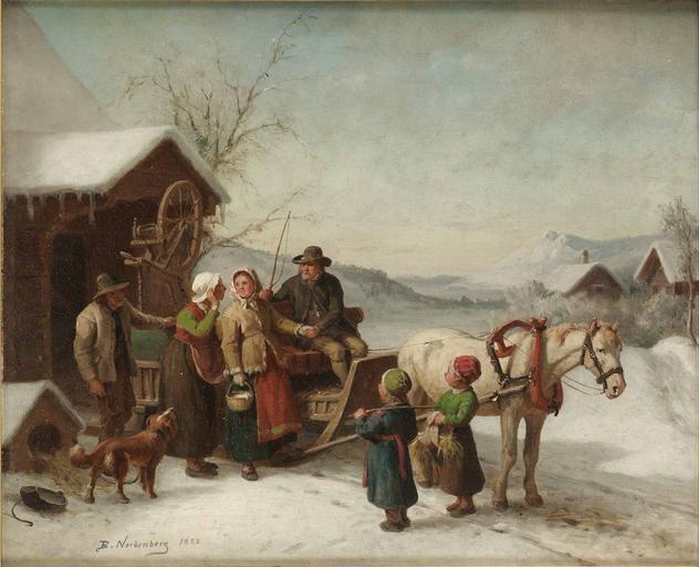 Keywords: Bengt Nordenberg - Vinterfärd.jpg Vinterfärd creator Bengt Nordenberg 1882 oil canvas cm 40 50 B Nordenberg 1882 signature/date lowerleft www lillabukowskis com Public domain PD-old-100 Bengt Nordenberg 1882 paintings Sleighs in art