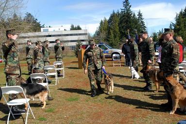 | Keywords: 'Benny' the Working Dog Retires DVIDS165312.jpg en Military working dog 'Benny' passes through side boys with Petty Officer 1st Class Allan Tetreault after his retirement ceremony at Naval Base Kitsap Bangor Benny retired after ten years of military service 2009-04-14 Petty Officer 2nd Class Maebel Tinoko https //www dvidshub net/image/165312 090414-N-+++++-002 2009-04-15 18 06 SILVERDALE WA US PD-USGov-Military-Navy Naval Base Kitsap Images from DoD uploaded by Fæ | ||||