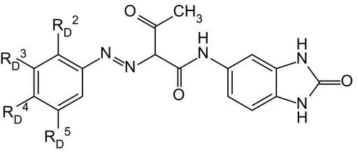 | Keywords: Benzimidazolon Yellow.svg  en Benzimidazol pigments of the yellow series general molecule structure de Die allgemeine Formel der Pigmente der Benzimidazolon-Gelbreihe own Hardcoreraveman Other fields + 2010-03-18 Pigments Azo compounds Un-N-substituted anilides Ketones Phenyl compounds Benzimidazolones  |