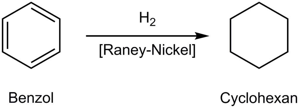 Keywords: BenzolzuCyclohexan.png Addition von H2 and Benzol zur Cyclohexandarstellung Own 2007-08-20 Yikrazuul Reactions of benzene