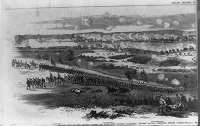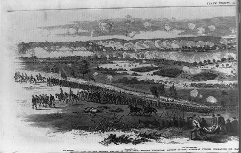| Keywords: Bereitstellung der Union am zweiten Tag der Schlacht am Bull Run3b41006r.jpg  Second day of the second battle of Bull Run fought Saturday August 30--the National forces commanded by Major General Pope and the rebel troops by General Lee Jackson and Longstreet / from a sketch by our special artist Mr Edwin Forbes The Library of Congress/American Memory Digital ID cph 3b41006 Source b w film copy neg of left section http //hdl loc gov/loc pnp/cph 3b41006 1862 Sept 20 Illus in Frank Leslie's illustrated newspaper pp 412-413 No known restrictions on publication LOC-image cph 3b41006 Frank Leslie's Illustrated Newspaper Second Battle of Bull Run PD-old PD-US  |