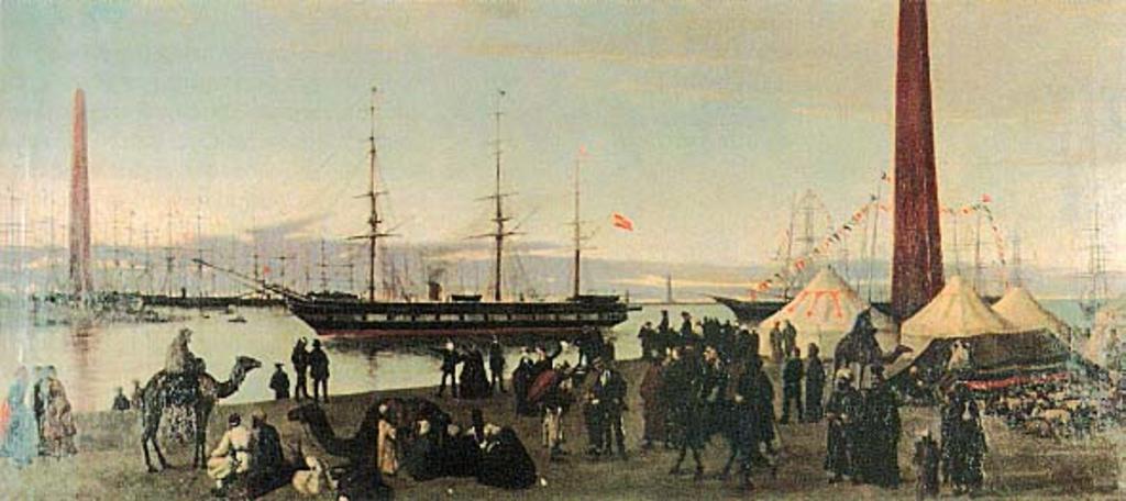 | Keywords: Berenguela en suez.jpg El lienzo representa el paso de la fragata española Berenguela que fue botada en 1854 por el Canal de Suez tras la inauguración del mismo en 1869 1870 oil canvas Size cm 156 82 Institution Museo Naval de Madrid object history exhibition history credit line accession number Unknown PD-old-100 Berenguela ship 1854 19th-century paintings in the Naval Museum of Madrid Historical images of Suez Canal 1870 Ramón Padró y Pedret Naval ships of Spain in art 1870 in Egypt 1870 |
