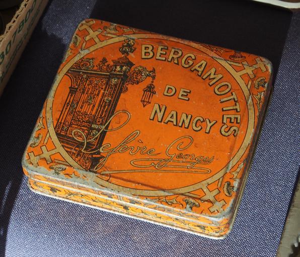 Keywords: Bergamottes de Nancy, Lefevrè Georges pic2.JPG Bergamottes de Nancy Lefevrè Georges own 2012-08-19 09 17 43 AlfvanBeem CC-zero Trademarked Nostalgia by Alf van Beem Bergamotes de Nancy Sweets tins