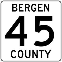| Keywords: Bergen County 45.svg County route shield self-created using Inkscape 2008-04-02 Kéiryn Own work all rights released Public domain Diagrams of New Jersey county route markers 0045 Diagrams of county route markers with county name 0045 45 number |