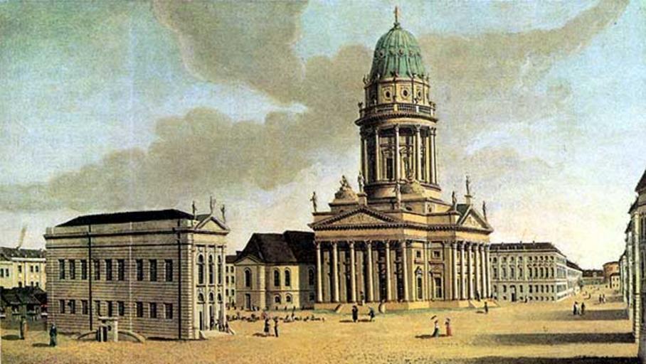 View Original:Berlin_Gendarmenmarkt_m_franzoes_Dom_u_Komoedienhaus_(Fechhelm_1788).jpeg (640x361)