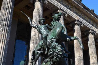 Keywords: berlin sculpture bronze horse reiter columnar museum museum island culture lion fight ionic spear artwork fig capital monument bronze sculpture places of interest historically germany