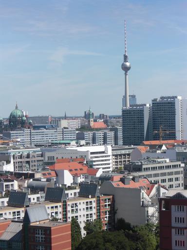 Keywords: berlin tv tower germany cityscape skyline fernsehturm alexanderplatz sky blue