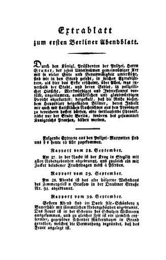 | Keywords: Berliner Abendblätter 1810 005.jpg  Berliner Abendblätter Berlin Julius Eduard Hitzig Berliner_Abendblätter_1810_ jpg 004 006 http //www presse uni-wuerzburg de/einblick/abendblaetter/ 1810-1811 Heinrich von Kleist Author died more than 70 years ago - public domain PD-old-100 Berliner Abendblätter |