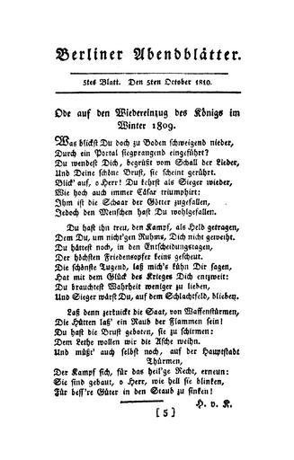 | Keywords: Berliner Abendblätter 1810 019.jpg Berliner Abendblätter Berlin Julius Eduard Hitzig Berliner_Abendblätter_1810_ jpg 018 020 http //www presse uni-wuerzburg de/einblick/abendblaetter/ 1810-1811 Heinrich von Kleist Author died more than 70 years ago - public domain PD-old-100 Berliner Abendblätter |