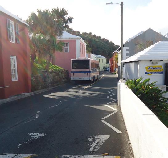 Keywords: Bermuda (UK) photos number 55.jpg en Roads in Bermuda are narrow often without sidewalks with walls and buildings practically touching the street making passage particularly dangerous for pedestrian traffic as well as motor scooters or mopeds and even buses too In this image a bus on the north shore road in Flatts Village 2016-11-17 14 35 50 own Tomwsulcer other versions cc-zero Bermuda Roads Buses in Bermuda MAN buses |