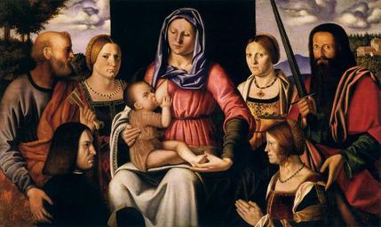 | Keywords: Bernardino Luini - Virgin and Child with Saints and Donors - WGA13775.jpg ca 1507 Oil on canvas transferred from wood size cm 78 126 Institution Museo Civico Padua object history credit line accession number WGA link 13775 http //www wga hu/art/l/luini/father/2/virgin_c jpg http //www wga hu/html/l/luini/father/2/virgin_c html painting religious Italian 1501-1550 PD-old-100 WGA form painting WGA type religious WGA School Italian WGA time period 1501-1550 Bernardino Luini Virgin and Child with Saints and Donors Paintings in the Museo Civico Padua 16th-century donor portraits with Madonna 1500s paintings from Italy 1500s paintings in Italy 1507 paintings 16th-century paintings of Christian saints 16th-century paintings of Madonna and Child 16th-century paintings of Saint Paul 16th-century paintings of Saint Peter 16th-century religious paintings in Italy Paintings of Christian saints in Italy Paintings of Madonna lactans in Italy Paintings of Saint Lucy Sacra Conversazione |