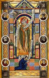 Keywords: Bernward.jpg de Hl Bernward inmitten seines Domes der Engel links oben übergibt ihm die Kreuzesreliquie Malerei auf Leder aus dem Stammheim-Messbuch Hildesheim ru святой Бе нвальд Хильдесхаймский Изоб ажение на коже молитвослов Святой в своём собо е ангел пе едаёт ему частицу Животво ящего К еста Господня Stammheim-Messbuch 1170 unbekannter Künstler PD-old-100 Bernward of Hildesheim posthumous objects MS 64 Getty museum - Stammheim Missal