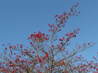 Keywords: berries fruits red tree berry red leather leaf weißdorn thorn apple crataegus hawthorn crataegus crus weißdorn crataegus crus galli valve thorn blue sky fruit jewelry street tree ornamental tree