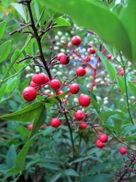 Keywords: berries red round holy bamboo leaves plant foliage green