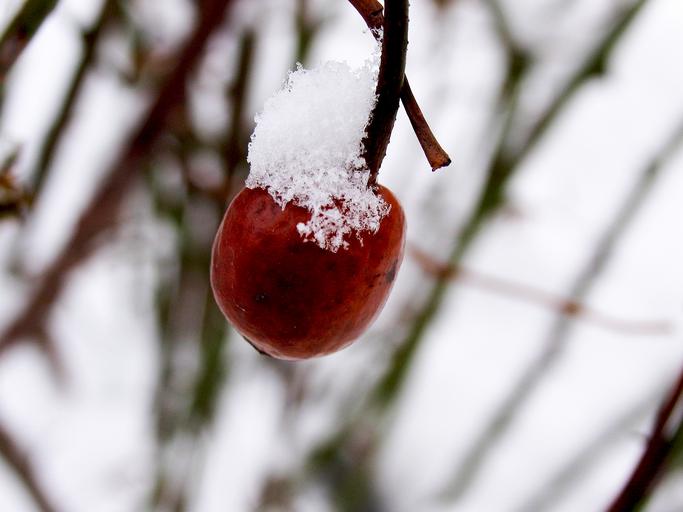 Keywords: berry red fruits bush branch red snow winter nature plant