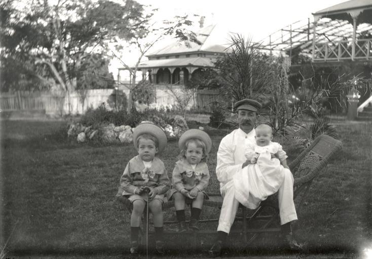 Keywords: Bert-norm-george-ivy-r.jpg en Bert Roberts Junior with his children Norm George and Ivy Little boys were often dressed in sailor style outfits and had ringlets in their hair The photo was taken around 1912 at the family home in York Street Ipswich Bert built the house in 1907 Bert married Florence Sarah Roberts in 1907 They had four surviving children Norman 1908 George 1909 Florence Ivy 1912 and Don John Edwin 1916 Queensland Museum holds over 1000 of Bert Roberts' plate glass negatives and prints from the era Queensland Museum Digitised by Queensland Museum beginning 1900 The original image is public domain The plate glass negative is owned by Queensland Museum Digitisation of this image is licensed under CC BY SA 3 0 QM_Infobox bert-norm-george-ivy-r jpg A E Bert Roberts plate glass photo collection Glass plate negatives Early 20th Century Queensland Queensland Museum Queensland Museum Collections Ringlets hair fashion Fathers and children 1900 portrait photographs PD-Australia URAA entered in force in the U S |