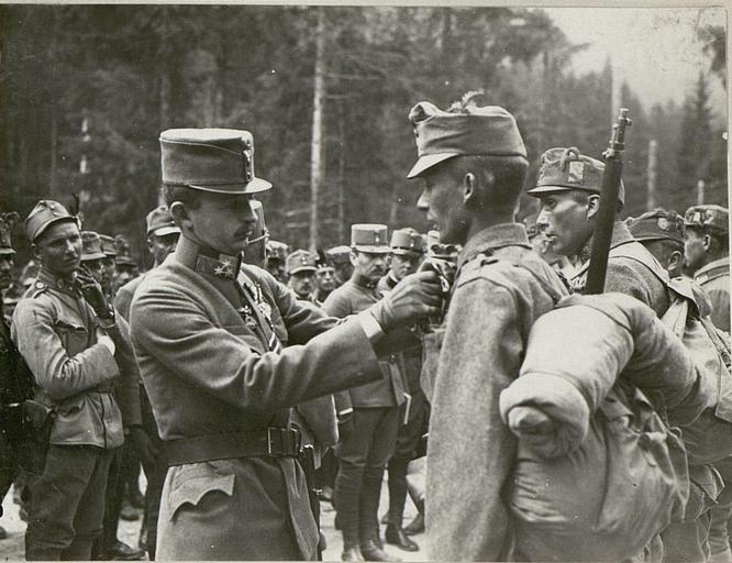 | Keywords: Besuch Sr, Majestät Kaiser Karl in Baitle (BildID 15623635).jpg depicted place austria de K u k Kriegspressequartier Lichtbildstelle - Wien credit line Österreichische Nationalbibliothek - Austrian National Library http //www bildarchivaustria at/Preview/15623635 jpg<br>Catalog http //www bildarchivaustria at/Pages/ImageDetail aspx p_iBildID 15623635 accession number WK1/ALB080/23912 http //creativecommons org/publicdomain/mark/1 0/ el Α΄ Παγκόσμιος Πόλεμος en World War I zh 第 次世界大战 ca Primera Guerra Mundial it Prima guerra mondiale cs První světová válka cy Y Rhyfel Byd Cyntaf hy Առաջին համաշխա հային պատե ազմ ga An Chéad Chogadh Domhanda eu Lehen Mundu Gerra et Esimene maailmasõda gl Primeira Guerra Mundial es Primera Guerra Mundial ru Пе вая ми овая война az Birinci dünya müharibəsi pt Primeira Guerra Mundial no Første verdenskrig tr I Dünya Savaşı lv Pirmais pasaules karš lt Pirmasis pasaulinis karas ro Primul Război Mondial ar الحرب العالمية الأولى is Fyrri heimsstyrjöldin pl I wojna światowa yi ערשטע ווע ט מ חמה be Пе шая сусветная вайна fr Première Guerre mondiale bg Пъ ва световна война hr Prvi svjetski rat de Erster Weltkrieg hu Első világháború hi प्रथम विश्वयुद्ध bs Prvi svjetski rat fi Ensimmäinen maailmansota da 1 verdenskrig ja 第 次世界大戦 he מ חמת העו הראשונה ka პირველი მს ფლი მი sr П ви светски ат sq Lufta e Parë Botërore ko 1차 세계 전 sv Första världskriget mk П ва светска војна sk Prvá svetová vojna gd An Cogadh Mòr uk Пе ша світова війна sl Prva svetovna vojna PD-old-80-1923 Kriegspressequartier Alben 1914-1918 Decorations Images uploaded by Fæ Karl I of Austria in 1917 |