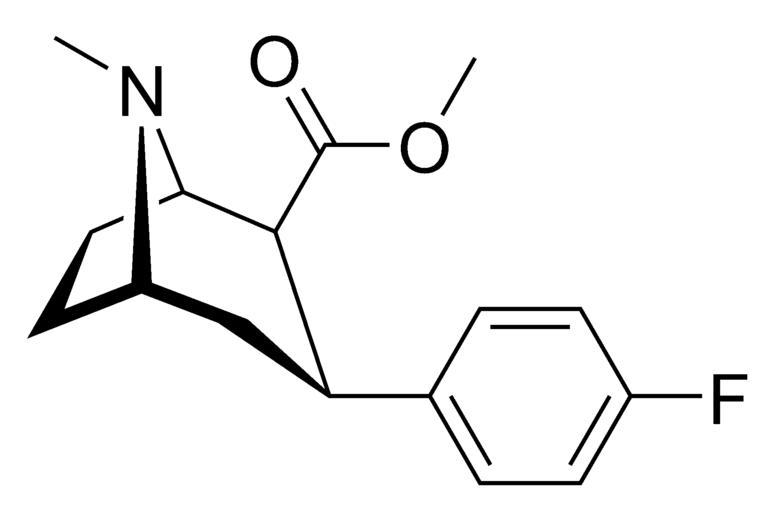 Keywords: Beta-CFT chemical structure.png Chemical structure of - -2β-Carbomethoxy-3β- 4-fluorophenyl tropane Own 2008-01-09 Cacycle Comments High-resolution black/white PNG made with ChemDraw and IrfanView ” see WikiProject Chemistry - structure drawing for detailed instructions Please drop me a note if you need the source file Tropanes Monofluorobenzenes Carboxylate esters Methyl esters Images created or edited with IrfanView |