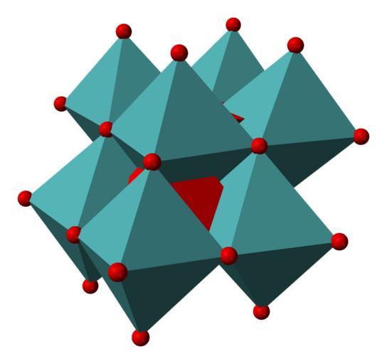 | Keywords: Beta-octamolybdate-anion-from-xtal-3D-polyhedra-B.png Polyhedral model of the β-octamolybdate anion β-Mo<sub>6</sub>O<sub>26</sub><sup>4 ˆ’</sup> as found in the crystal structure of tetraimidazolium β-octamolybdate VI C<sub>3</sub>H<sub>5</sub>N<sub>2</sub> <sub>4</sub>β-Mo<sub>8</sub>O<sub>26</sub> X-ray crystallographic data from http //dx doi org/10 1107/S0108270100012221 Acta Cryst 2000 C56 e441-e442 Model constructed in http //www crystalmaker com/ CrystalMaker 8 1 Image generated in http //accelrys com/products/discovery-studio/visualization/discovery-studio-visualizer html Accelrys DS Visualizer Own 2008-03-14 Ben Mills Benjah-bmm27 Images by Ben Mills Beta-octamolybdate ion |