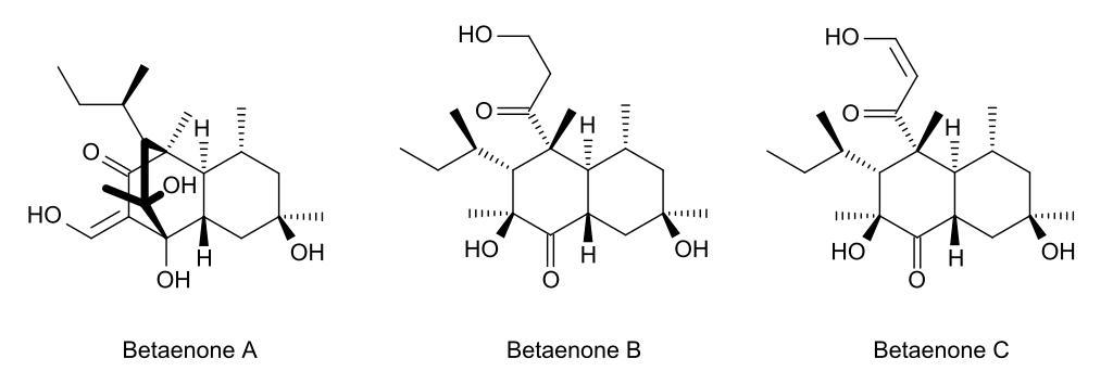 Keywords: Betaenone ABC skeletal.svg Betaenone A A Betaenone B B and Betaenone C C own Anypodetos 2011-12-10 BKchem 001 -check Betaenones Cc-zero