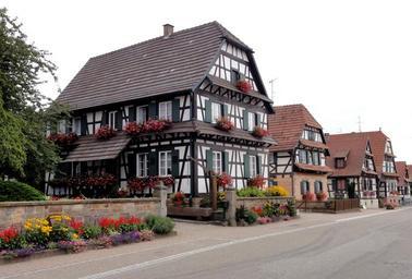 Keywords: betschdorf alsace farmhouses timber framing road street france historic