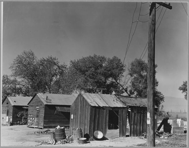 | Keywords: Between Woodpatch and Lamont, Kern County, California. Cabins for agricultural workers on and off re . . . - NARA - 521701.jpg Scope and content Full caption reads as follows Between Woodpatch and Lamont Kern County California Cabins for agricultural workers on and off relief Rent 2 75 per month plus electricity General notes 521701 Local identifier 83-G-41457 Department of Agriculture Bureau of Agricultural Economics Division of Economic Information ca 1922 - ca 1953 NARA-Author Lange Dorothea 1895-1965 Photographer 1372774 <br /> Still Picture Records Section Special Media Archives Services Division NWCS-S National Archives at College Park 8601 Adelphi Road College Park MD 20740-6001 1940-04-12 Record group Record Group 83 Records of the Bureau of Agricultural Economics 1876 - 1959 Record group ARC 412 Photographic Prints Documenting Programs and Activities of the Bureau of Agricultural Economics and Predecessor Agencies compiled ca 1922 - ca 1947 documenting the period ca 1911 - ca 1947 Series ARC 521048 File unit File unit ARC Variant control numbers NAIL Control Number NWDNS-83-G-41457 Other versions <gallery> File Between_Woodpatch_and_Lamont _Kern_County _California _Cabins_for_agricultural_workers_on_and_off_re_ _ _ _-_NARA_-_521701 tif tif File Between_Woodpatch_and_Lamont _Kern_County _California _Cabins_for_agricultural_workers_on_and_off_re_ _ _ _-_NARA_-_521701 jpg jpg </gallery> NARA-cooperation PD-USGov Cabins in California Lamont Power lines in California 01 Dorothea Lange Kern County California Lamont NARA images of Kern County California Black and white photographs of residential buildings Lamont Black and white photographs of California |