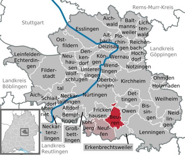 | Keywords: Beuren in ES.svg  DeLocMaps Beuren Beuren bei Nürtingen Landkreis Esslingen District of Esslingen Esslingen district L'arrondissement d'Esslingen Arrondissement d'Esslingen Baden-Württemberg Bade-Wurtemberg Baden-Württemberg Adobe Illustrator <br/> own based on <br/> File Municipalities in Baden-Württemberg svg by TUBS<br/> File Baden-Württemberg HD district svg by TUBS 2010-04-22 Hagar66 based on work of TUBS Hagar66 Commonist Hagar66/licensesection Attribution TUBS/Credits Locator maps of municipalities in Landkreis Esslingen Beuren bei Nürtingen |