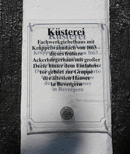 | Keywords: Bevergern Kuesterei 03.jpg North Rhine-Westphalia Germany The timber framed building dates from 1663 and is a listed cultural heritage monument de Informationsschild am Fachwerkhaus Küsterei Kirchstraße 5 in der Altstadt von Hörstel-Bevergern Kreis Steinfurt Nordrhein-Westfalen Deutschland Das historische Gebäude von 1663 steht seit 1986 komplett unter Denkmalschutz own J -H Janßen 2013-05-04 52 16 3657 0 N 7 34 7861 0 E alt 39 3_source exif_heading FoP-Germany Küsterei Bevergern Plaques in Hörstel Bevergern 2013 in Hörstel 20130504 Horstel-Bevergern May 2013 in Germany 20130504 Horstel-Bevergern Photographs taken on 2013-05-04 Horstel-Bevergern Taken with Canon EOS 6D Taken with Canon EF 24-105mm F4L IS USM Bilder von J -H Janßen Cc-zero |