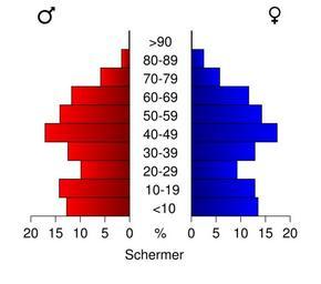 | Keywords: Bevolkingspiramide 2008 - CBS gemeentecode 0458.svg Age pyramids for the municipalities in the Netherlands 1/1/2008 Created in svg with own script Statistics provided by Centraal Bureau voor de Statistiek Voorburg/Heerlen Source Tabel Bevolking; burgerlijke staat geslacht leeftijd en regio 1 januari Tabeltoelichting Gewijzigd op 14 mei 2008 Verschijningsfrequentie per jaar http //statline cbs nl/StatWeb/publication/default aspx DM SLNL PA 03759NED D1 1-2 2c15 D2 118-128 D3 1-4 2c8-9 2c13-19 2c21 2c24 2c26 2c28-30 2c33-36 2c38-40 2c43-44 2c48-49 2c52 2c54 2c56 2c59 2c62 2c64 2c67-71 2c78 2c80-84 2c86-89 2c91 2c93-98 2c101 2c103-107 2c109 2c111-112 2c115 2c118-119 2c121-124 2c126-127 2c130 2c132-134 2c136 2c138-141 2c143-144 2c146 2c151 2c154 2c156-157 2c159-160 2c162-163 2c166-167 2c169 2c171 2c177-179 2c181-182 2c184 2c187-189 2c191-195 2c198 2c201 2c204-205 2c207 2c209 2c211 2c214 2c218-219 2c221-224 2c226 2c228-230 2c233 2c236 2c241-243 2c246-251 2c253 2c257-262 2c265 2c271-274 2c276 2c278 2c282 2c284 2c286-290 2c292 2c294 2c296 2c298-299 2c301-303 2c306 2c312-314 2c317-318 2c321-322 2c327 2c329 2c332 2c334-335 2c337 2c339 2c344-346 2c349-353 2c355-358 2c361 2c363-366 2c368 2c370-373 2c380 2c382-383 2c386-391 2c393-395 2c399 2c403-406 2c408-409 2c412 2c416-417 2c419 2c421-422 2c424 2c426-430 2c432-433 2c439-441 2c447-448 2c450-452 2c455-456 2c458-459 2c462-463 2c465 2c468-469 2c471 2c476 2c478-479 2c481-482 2c484-486 2c489 2c491-492 2c496 2c498-500 2c503 2c505-507 2c512-516 2c519-521 2c523-524 2c528-532 2c534 2c536 2c540 2c542-543 2c546-550 2c552-555 2c560-561 2c564-565 2c567-568 2c572-573 2c577-580 2c586 2c588-594 2c597 2c599-603 2c605 2c609-610 2c612-614 2c617 2c619 2c621-624 2c628 2c630-631 2c633 2c636-637 2c640 2c646-647 2c649-651 2c653 2c655-661 2c663-664 2c666 2c668-670 2c673 2c675-681 2c683-684 2c686 2c689-690 2c693 2c695-696 2c698 2c701-702 2c706-710 2c717 2c719 2c721-722 2c724-725 2c727 2c732-733 2c735-742 2c746 2c750-752 2c756-757 2c759 2c761 2c763-764 2c766-769 2c771-772 2c774-775 2c777 2c779 2c783 2c785-788 2c791-793 2c796-797 D4 l HDR T STB G1 2cG2 2cG3 VW D StatLine own work using CBS data 2009-01 Michiel1972 Own work all rights released Public domain Population pyramids of municipalities of the Netherlands 2008 |