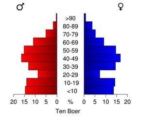 | Keywords: Bevolkingspiramide 2008 - CBS gemeentecode 0009.svg Age pyramids for the municipalities in the Netherlands 1/1/2008 Created in svg with own script Statistics provided by Centraal Bureau voor de Statistiek Voorburg/Heerlen Source Tabel Bevolking; burgerlijke staat geslacht leeftijd en regio 1 januari Tabeltoelichting Gewijzigd op 14 mei 2008 Verschijningsfrequentie per jaar http //statline cbs nl/StatWeb/publication/default aspx DM SLNL PA 03759NED D1 1-2 2c15 D2 118-128 D3 1-4 2c8-9 2c13-19 2c21 2c24 2c26 2c28-30 2c33-36 2c38-40 2c43-44 2c48-49 2c52 2c54 2c56 2c59 2c62 2c64 2c67-71 2c78 2c80-84 2c86-89 2c91 2c93-98 2c101 2c103-107 2c109 2c111-112 2c115 2c118-119 2c121-124 2c126-127 2c130 2c132-134 2c136 2c138-141 2c143-144 2c146 2c151 2c154 2c156-157 2c159-160 2c162-163 2c166-167 2c169 2c171 2c177-179 2c181-182 2c184 2c187-189 2c191-195 2c198 2c201 2c204-205 2c207 2c209 2c211 2c214 2c218-219 2c221-224 2c226 2c228-230 2c233 2c236 2c241-243 2c246-251 2c253 2c257-262 2c265 2c271-274 2c276 2c278 2c282 2c284 2c286-290 2c292 2c294 2c296 2c298-299 2c301-303 2c306 2c312-314 2c317-318 2c321-322 2c327 2c329 2c332 2c334-335 2c337 2c339 2c344-346 2c349-353 2c355-358 2c361 2c363-366 2c368 2c370-373 2c380 2c382-383 2c386-391 2c393-395 2c399 2c403-406 2c408-409 2c412 2c416-417 2c419 2c421-422 2c424 2c426-430 2c432-433 2c439-441 2c447-448 2c450-452 2c455-456 2c458-459 2c462-463 2c465 2c468-469 2c471 2c476 2c478-479 2c481-482 2c484-486 2c489 2c491-492 2c496 2c498-500 2c503 2c505-507 2c512-516 2c519-521 2c523-524 2c528-532 2c534 2c536 2c540 2c542-543 2c546-550 2c552-555 2c560-561 2c564-565 2c567-568 2c572-573 2c577-580 2c586 2c588-594 2c597 2c599-603 2c605 2c609-610 2c612-614 2c617 2c619 2c621-624 2c628 2c630-631 2c633 2c636-637 2c640 2c646-647 2c649-651 2c653 2c655-661 2c663-664 2c666 2c668-670 2c673 2c675-681 2c683-684 2c686 2c689-690 2c693 2c695-696 2c698 2c701-702 2c706-710 2c717 2c719 2c721-722 2c724-725 2c727 2c732-733 2c735-742 2c746 2c750-752 2c756-757 2c759 2c761 2c763-764 2c766-769 2c771-772 2c774-775 2c777 2c779 2c783 2c785-788 2c791-793 2c796-797 D4 l HDR T STB G1 2cG2 2cG3 VW D StatLine own work using CBS data 2009-01 Michiel1972 Own work all rights released Public domain Population pyramids of municipalities of the Netherlands 2008 |