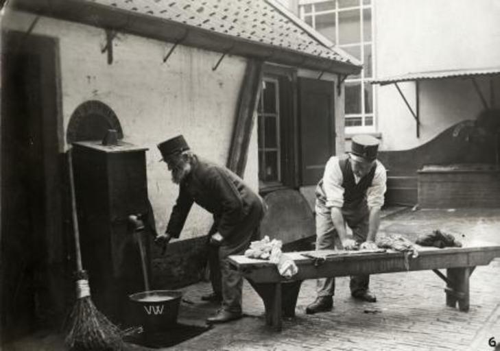 Keywords: militairen koninklijk nederlands-indisch nederlandsindisch leger knil bronbeek uniform nederland pomp drawing water drawingwater broom bench food preparation foodpreparation cleaning bank baard bucket emmer laundry tile roof tileroof Spaarnestad Photo/SFA022800574 Gemeerde oud-militairen doen de was in het Koninklijk tehuis voor KNIL-militairen Bronbeek in Arnhem. Nederland, 1912. Spaarnestad Photo/SFA022800574 Gemeerde oud-militairen doen de was in het Koninklijk tehuis voor KNIL-militairen Bronbeek in Arnhem. Nederland, 1912. |