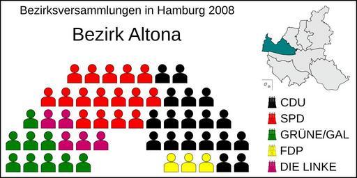 | Keywords: Bezirksversammlung 2008 Altona.svg  de Sitzverteilung der Bezirksversammlung Altona nach der Wahl vom 24 02 2008 unter verwendung von teilen von 20px und von der karte 20px DLiebisch Election apportionment diagrams of Hamburg Bezirksversammlungen Altona 2008 Bezirk Altona Bezirksversammlung 2008 |
