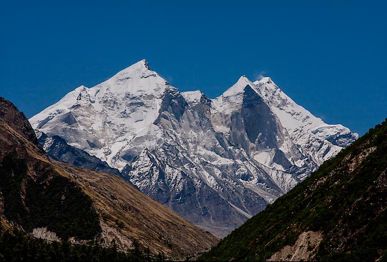 | Keywords: mountain landscape outdoor mountain peak hill ridge mountain ridge arete mountainside As the Bhagirathi group comes into view, Mt. Sudarshan wanes. The white form visible at top left of this picture is Sudarshan's snowy shoulder. Chirbasa is just beyond the green patch at the center. The Bhagirathi group of peaks reveals itself for the first time just before Chirbasa. From left to right are II, IV, III and I (numbered in order of height). If you look closely, Bhagirathi II quite looks like an old man's face - with 2 eyes shut in meditation, a bit of a nose (here's where you have to indulge your imagination a little), a mouth and a flowing beard - a form like that at the very source of the Ganga fits in quite neatly with the myth of the sage Bhagirath, who meditated for ages to bring Ganga to Earth. Bhagirathi IV is quite dwarfed by it's cousins, and is often not considered a peak at all by local guides. That only happens at the Himalayan scale - a 6193m peak gets so dwarfed by it's neighbors that it's barely talked about. Sort of like Ringo Starr. As the Bhagirathi group comes into view, Mt. Sudarshan wanes. The white form visible at top left of this picture is Sudarshan's snowy shoulder. Chirbasa is just beyond the green patch at the center. The Bhagirathi group of peaks reveals itself for the first time just before Chirbasa. From left to right are II, IV, III and I (numbered in order of height). If you look closely, Bhagirathi II quite looks like an old man's face - with 2 eyes shut in meditation, a bit of a nose (here's where you have to indulge your imagination a little), a mouth and a flowing beard - a form like that at the very source of the Ganga fits in quite neatly with the myth of the sage Bhagirath, who meditated for ages to bring Ganga to Earth. Bhagirathi IV is quite dwarfed by it's cousins, and is often not considered a peak at all by local guides. That only happens at the Himalayan scale - a 6193m peak gets so dwarfed by it's neighbors that it's barely talked about. Sort of like Ringo Starr. |