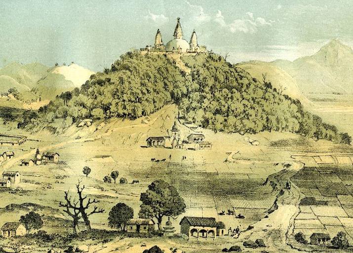 Keywords: Bhuikhel wright 1877.jpg en Sketch of Swayambhu stupa and Bhuikhel plain in Kathmandu Nepal made by Daniel Wright in 1877 2014-02-21 own Karrattul PD-Nepal Uploaded with UploadWizard Views of Swayambhunath Nepal in the 1870s