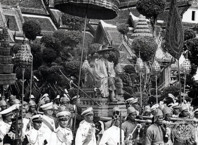 Keywords: Bhumibol Adulyadej 05.05.1950.jpg th ขบวนแห่แหนพระบาทสม ด็จพระปรมินทรมหาภูมิพลอดุลย ดช ในพระราชพิธีบรมราชาภิ ษก มื่อวันที่ 5 พฤษภาคม 2493 1950-05-05 http //www finearts go th/nat/images/kingbhumibol/CFN01-P0017068-0000 jpg The National Archives of Thailand สำนักพระราชวัง other versions Custom license marker 2016 10 20 PD-Thailand Bhumibol Adulyadej in 1950