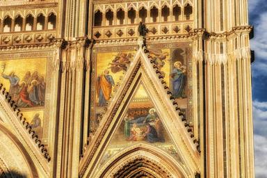 Keywords: bible history religion maria himmelfahrt dom italy orvieto architecture church gothic faith middle ages mural picturesque ornament structure atmosphere detail gold precious