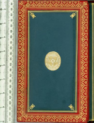 | Keywords: Bibliotheca Graeca et Latina - Doublure (G406).jpg  Style Unspecified; Caption Doublure; Colour Unspecified; Edge Unspecified exhibition history Decorative Technique Unspecified; Cover Material Unspecified Green silk ribbon marker Doublures of coated blue paper and turn ins tooled in gold Ink ms note saying the book was given by Spencer to Thomas Grenville in 1802 Grenville's coat of arms in gold is pasted to the upper doublure object history Text 1784; Berlin; Spencer George John Second Earl Spencer 1758-1834 Grenville Thomas 1755-1846 object type Cc-zero place of creation Binding England place of discovery Unspecified British Library image http //www bl uk/catalogues/bookbindings/LargeImage aspx RecordId 020-000014347 ImageId ImageId 55871 Copyright BL Bibliotheca Graeca et Latina Uploaded with GWToolset Bibliotheca Graeca et Latina - Doublure G406 http //www webarchive org uk/bldatasets/bindings/doublure jpg 19th-century bookbinding Bookbinding British Library Bookbindings |