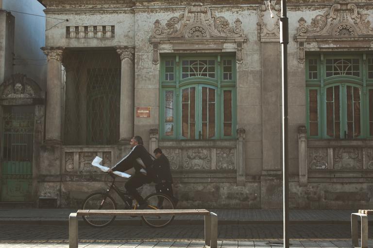 Keywords: bicycle grunge bike urban old dark facade house street road cycling italy mediterranean biking man worker briefcase cobblestone building windows architecture stone bench post