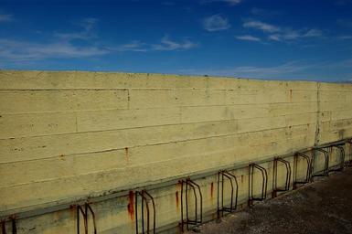 Keywords: bicycle parking bike rack wall barrier transportation urban bike vehicle outdoors row scene concrete sky rust