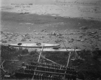Keywords: Bidarka kayak and salmon.jpg en Bristol Bay district Alaska Bidarka and kayak on beach near A P A cannery Ugashik River The rack in the foreground appears to hold drying fish fillets probably salmon Credit Gulf of Maine Cod Project NOAA National Marine Sanctuaries; Courtesy of National Archives NOAA Photo Library NOAA's Historic Fisheries Collection fish7600 http //www photolib noaa gov/htmls/fish7600 htm Original photographer not named; US Fish commission steamer Albatros; Archival Photographer Stefan Claesson 1900 PD-USGov Inuit kayaking Inuit food Bristol Bay Alutiiq Yupik 1900 in Alaska Baidarkas Beaches of Alaska |