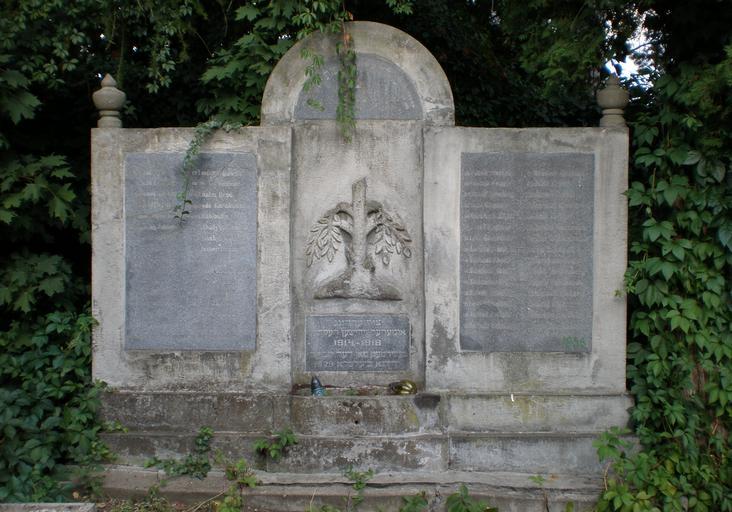 | Keywords: Bielsko-Biała Cmentarz żydowski 001.JPG Cmentarz żydowski w Bielsku-Białej Bielsko-Biała Denkmal für die Gefallenen des Ersten Weltkrieges own Janericloebe 2008-09 Jewish cemetery in Bielsko-Biała World War I memorials in Poland Tree on Jewish gravestones in Poland |