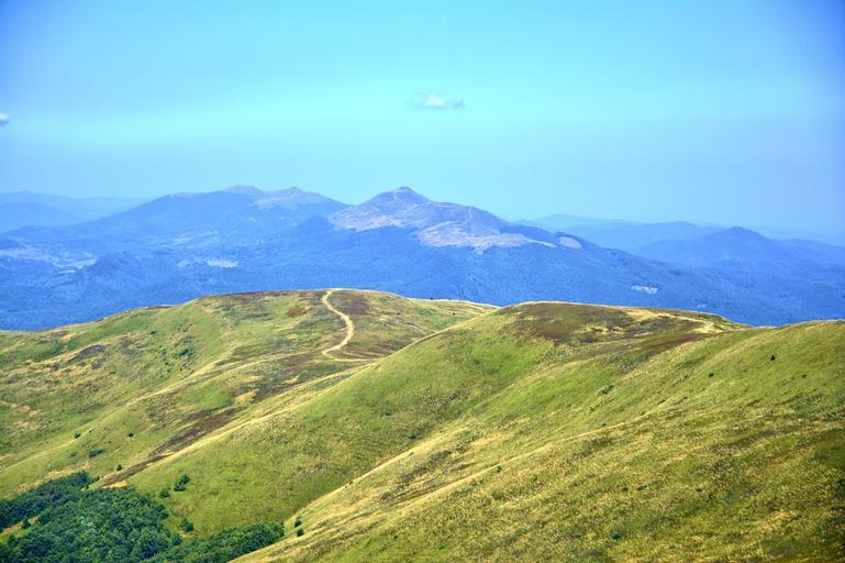Keywords: bieszczady tarnica beech berdo mountains the silence poland sky landscape nature top view holiday view tourism trail tops blue sky travel sunny green the horizon peace of mind panorama holidays colors blue grass time of year